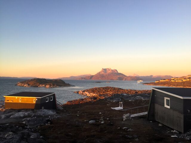 Inuk Hostel is a super cozy hostel near the waterfront with an excellent view of the landmark mountain Sermitsiaq. Inuk Hostel is centered around Café Inuk, where you'll find a cafe, meeting facilities, and food prepared from Greenlandic specialties such as reindeer, sheep, and fish. In the summer, you can come down to the beach and eat fish in the traditional Greenlandic way. Inuk is not centrally located, but it's only a 20-minute walk to the city center, and the view is worth it! Surrounding the café are four cabins built according to a 1930s Greenlandic model house proposal from the 1930s, giving it a very special atmosphere. There is a living room with a TV in each cabin. There are three cabins with four rooms and one cabin with two rooms, all with fantastic views and free Wi-Fi for guests.